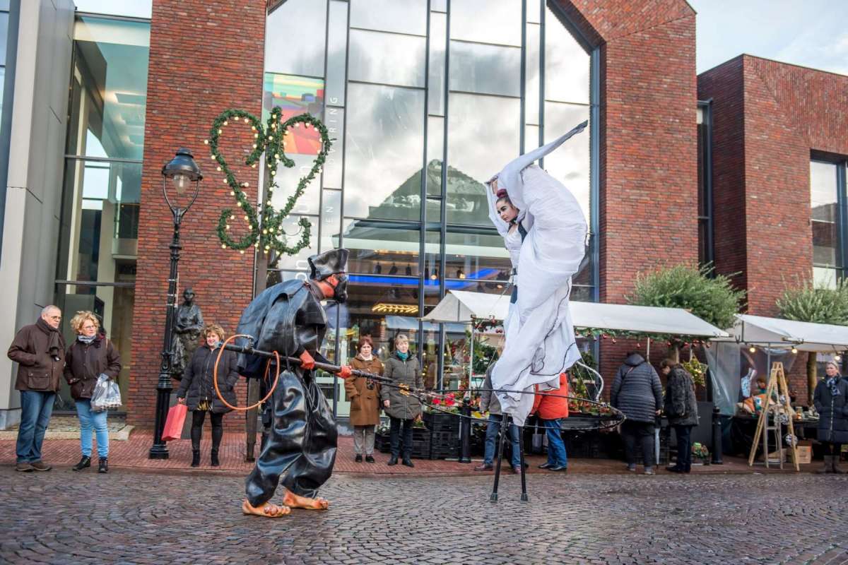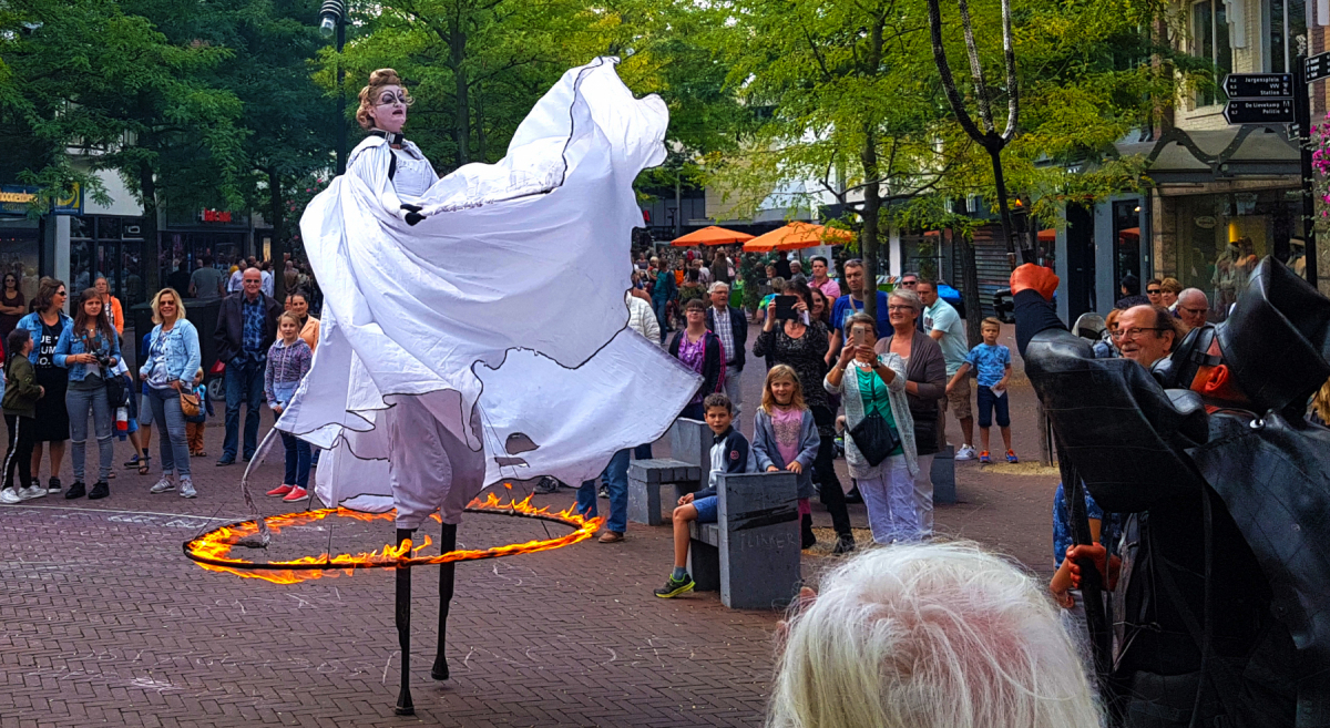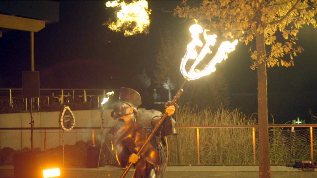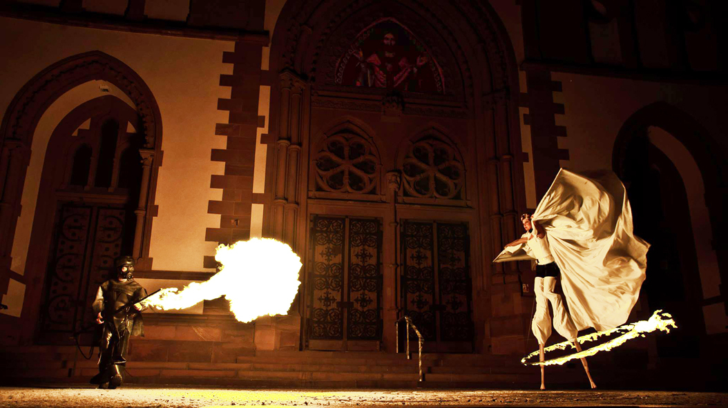 Een engel en een duivel laten ons zien dat de mens niet alleen goed en niet alleen slecht is. Angels and Demons is een vuur walkact op hoge stelten en op de grond.
