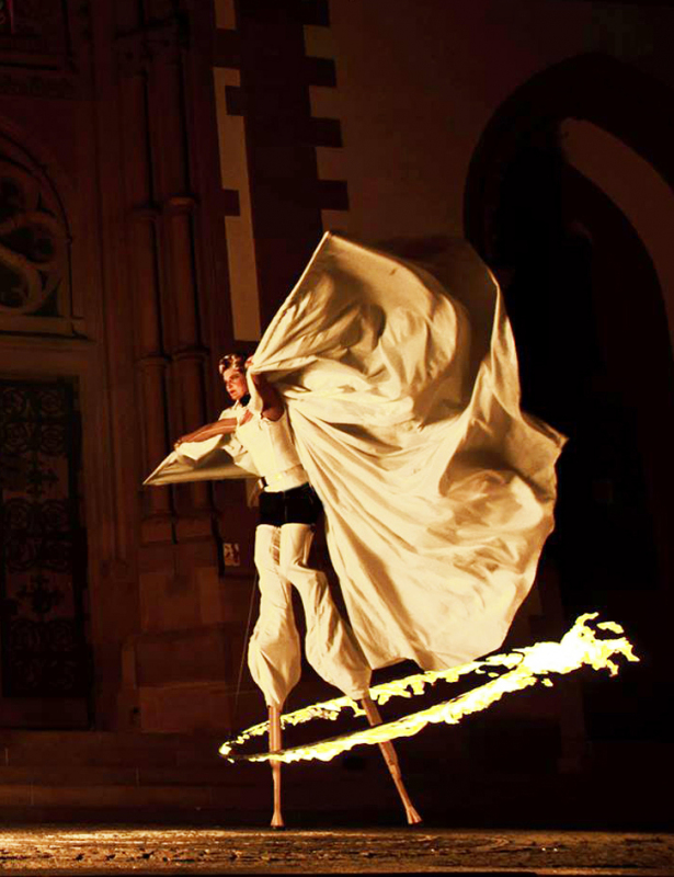 - Angel &Demon is spectaculair theater, een nog niet eerder vertoonde vuur walkact op hoge stelten