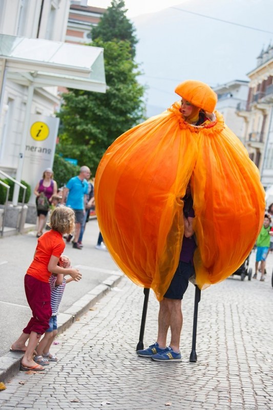• Solo – Parade met steltloper op hoge stelten, muziek en poëzie over reizen, zomer en sinaasappels.