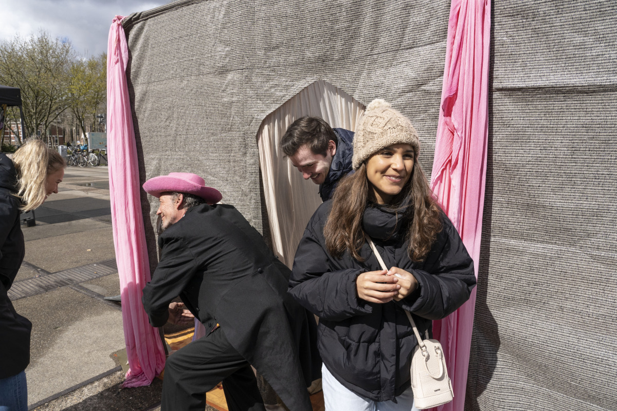Seen from the outside, it looks like a Bedouin tent is flirting with a circus-chapiteau with a guard who seems to have stepped out of a David Lynch film. When the door has been opened after a cleansing ritual, you enter a narrow corridor: the beginning of the labyrinth. After every turn you take you expect to have reached the middle, but that middle is waiting to be reached. The soundtrack of passionate Persian music and jungle sounds complete your journey. And eventually you reach the enclosure of the mythical Manticore.