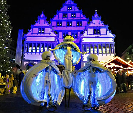 Technisch gezien is SNOW verlichte Winter Walkact uitgerust met de meest moderne lichteffecten. Veel LED’s die op de 3 figuren zijn gesynchroniseerd en door sensoren worden aangestuurd, zodat de lichtstemmingen individueel maar ook samen mooi werken. De juiste techniek om uw publiek zo veel mogelijk te betoveren.